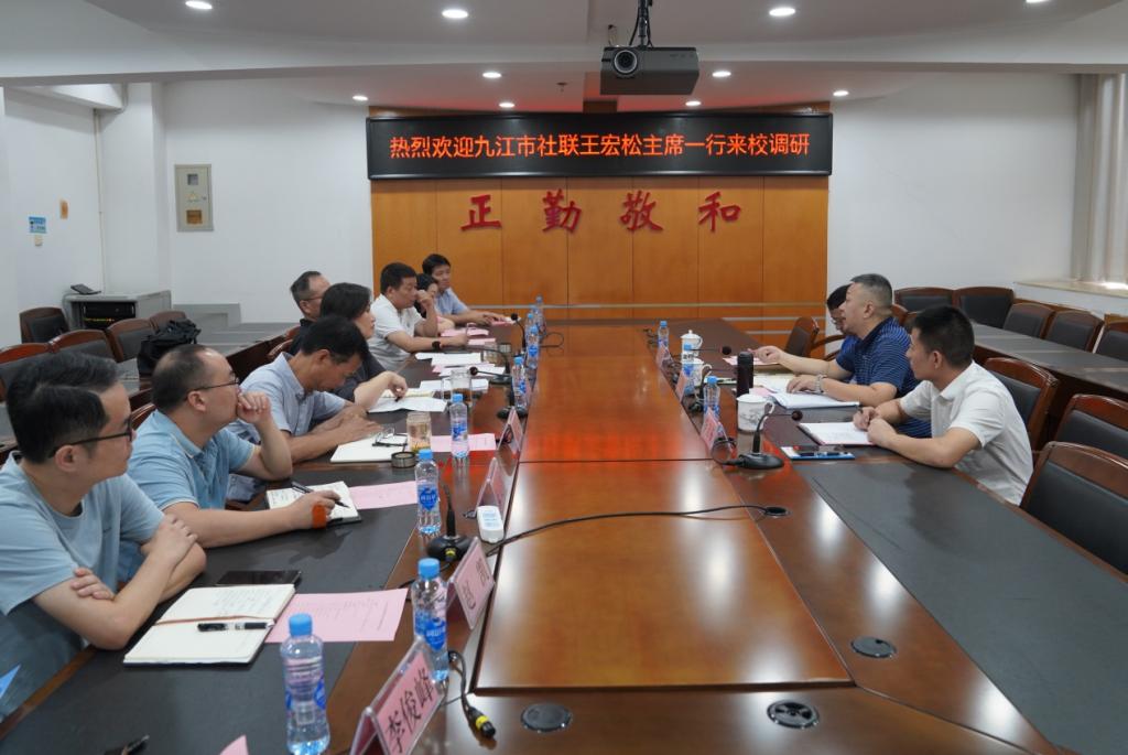 8月8日上午,九江市社会科学界联合会主席王宏松一行三人来beat365就“深化校地合作促进校地共建”开展专题调研。校长彭慧,校党委委员、副校长冯弋江以及学校相关部门负责同志参加调研座谈。