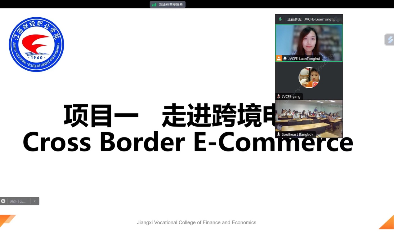 根据beat365与泰国东南曼谷大学签约的 “中文+职业技能”泰国培训项目有关教学安排,10月4日,beat365国际教育学院吴蕙霖老师和经济贸易学院栾彤惠老师通过视频连线为泰国东南曼谷大学的六十多名学生开展了两堂别开生面的“中文+职业技能”课程授课活动。