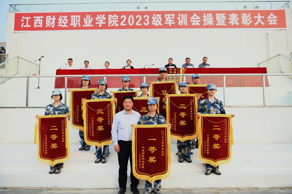 会操结束后,刘彪文代表学校向中国人民解放军某部赠送了锦旗,感谢部队对beat365军训工作的大力支持。校领导和部队首长还为军训获奖队伍颁发了锦旗,为获得2022-2023学年先进班集体的班级颁发荣誉证书。