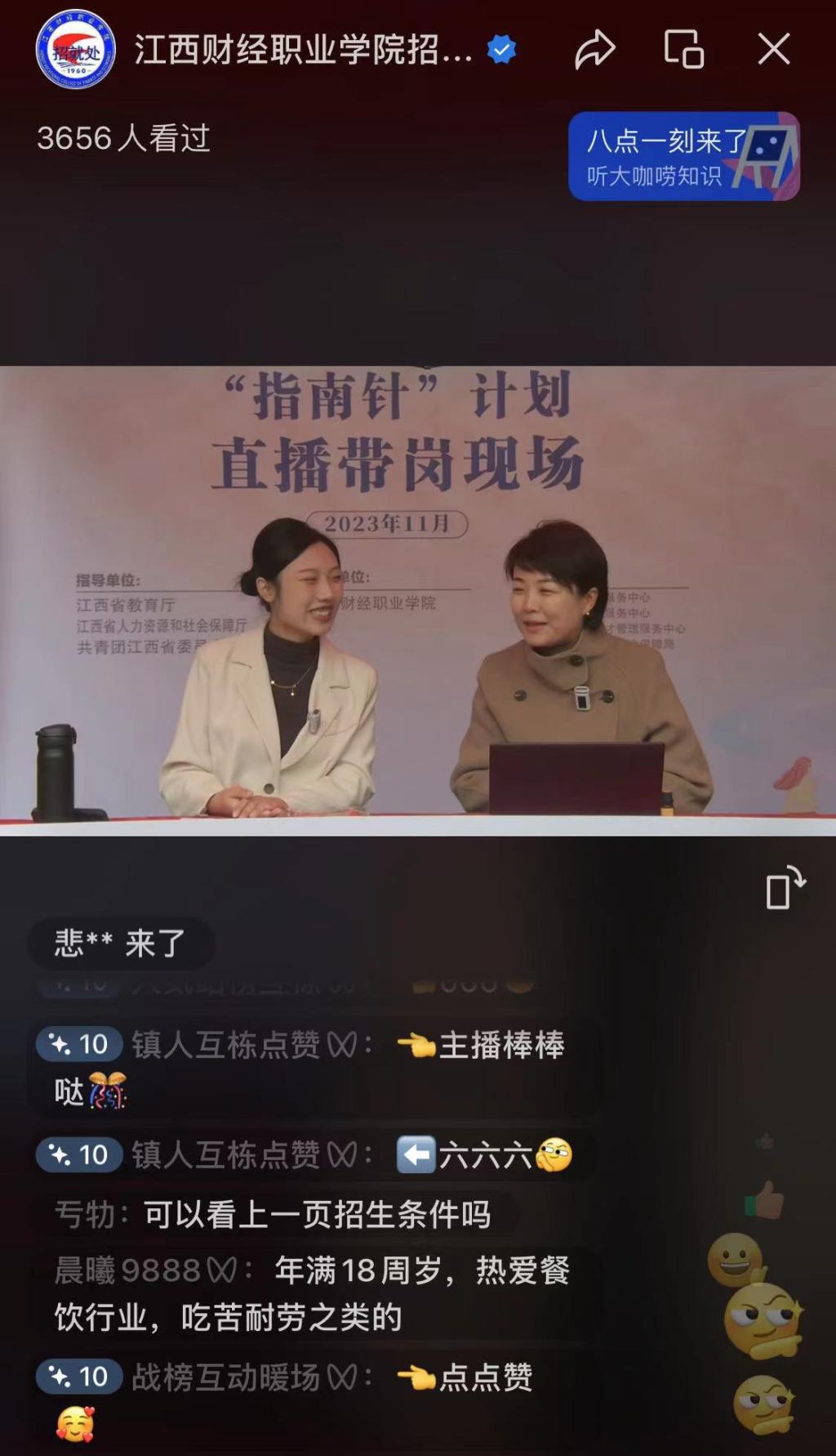 招聘会现场专门搭建了直播间,同步开展“直播带岗”活动,为毕业生精选名企优质岗位精准带岗,将“直播带岗”与校园招聘会有机结合。直播间里,学校老师带着学生关注度高的问题与企业HR交流,帮助毕业生了解招聘岗位、薪资福利、企业文化等企业信息,实时为毕业生答疑解惑。