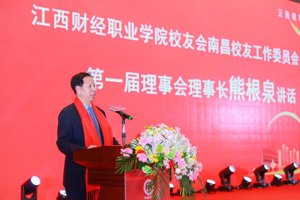 新当选校友会南昌工作委员会第一届理事会理事长熊根泉作了讲话。他感谢大家对他的关心和信任,并表示决不辜负大家对他的期望,将认真履行职责,团结广大校友,凝心聚力,做好校友会工作。