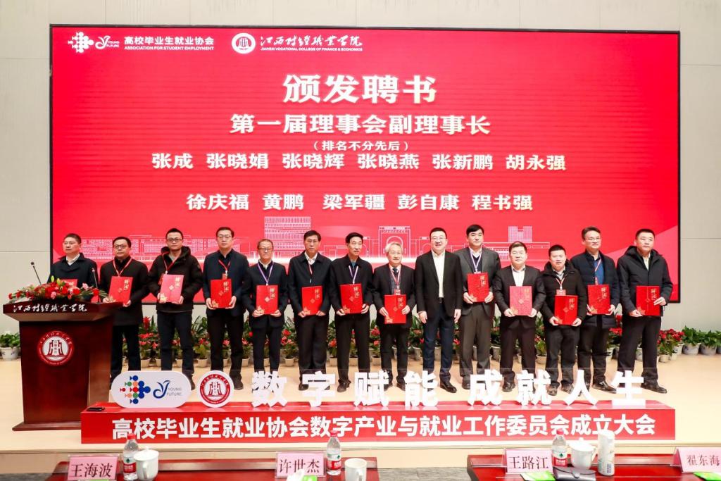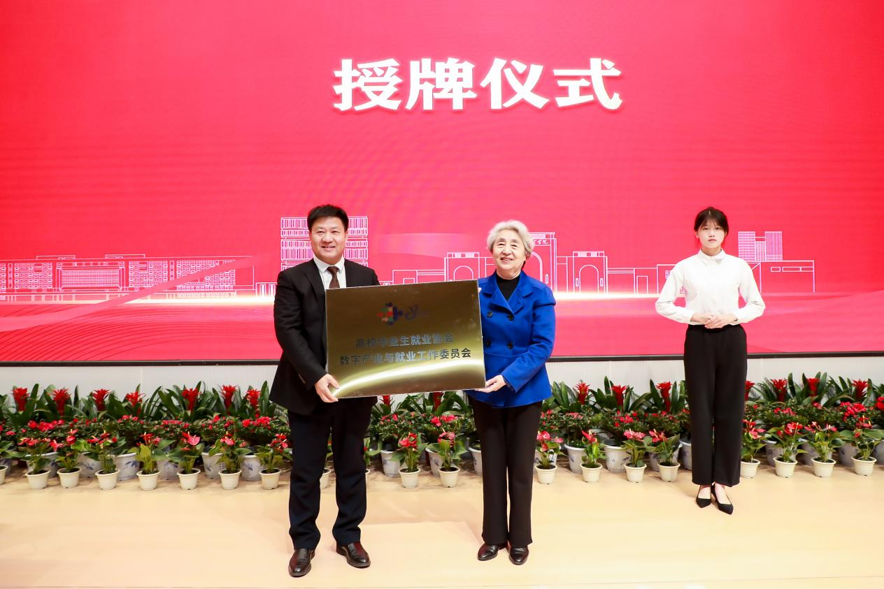 王路江向协会数字产业与就业工作委员会授牌,向协会数字产业与就业工作委员会理事长单位颁发聘书。翟东海向协会数字产业与就业工作委员会副理事长单位、秘书长单位代表颁发聘书;许世杰向协会数字产业与就业工作委员会学术委员会主任委员、副主任委员、秘书长颁发聘书。
