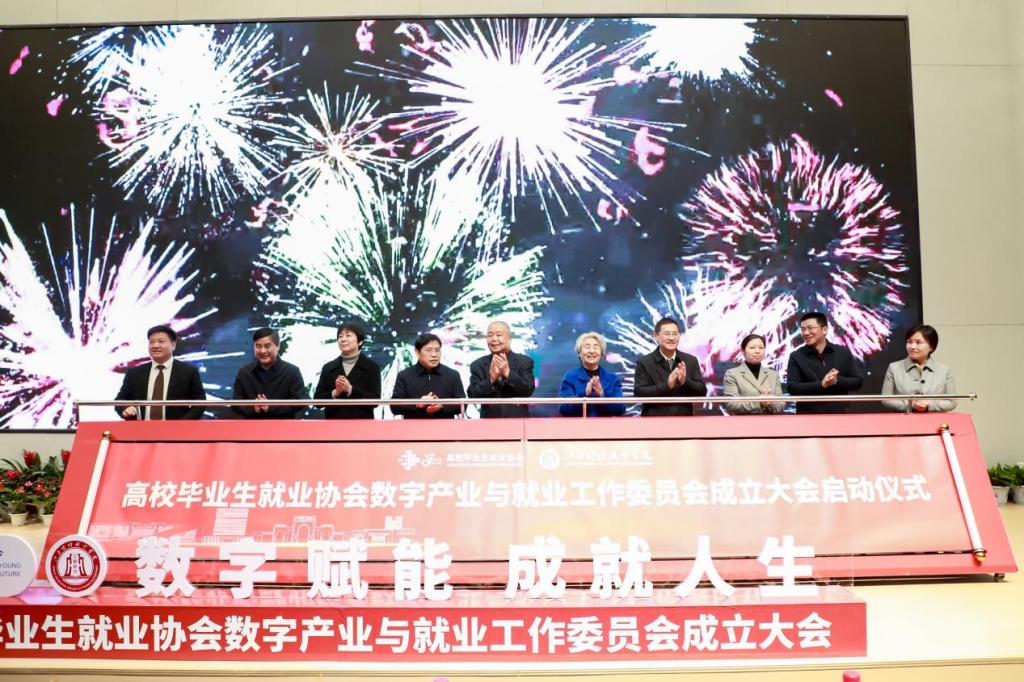大会还举行了高校毕业生就业协会数字产业与就业工作委员会启动仪式。张天保、王路江、郭杰忠、刘力群、江明成、丁喜春、许世杰、刘静俭、郭锦亮、刘彪文、彭慧上台参加推杆启动仪式,宣布高校毕业生就业协会数字产业与就业工作委员会正式成立。