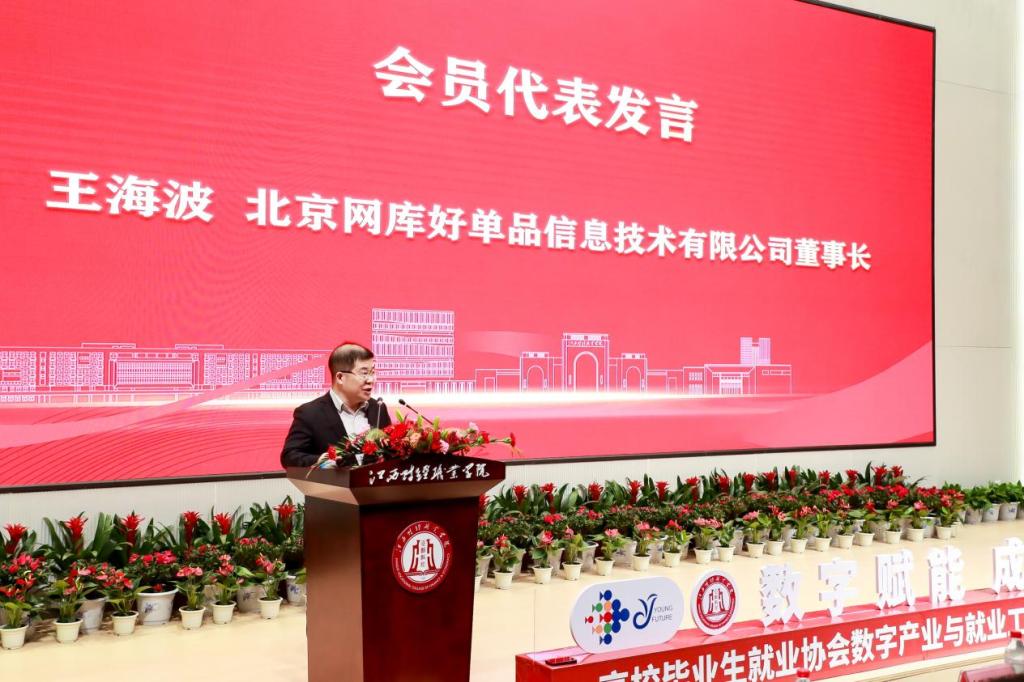 会员代表、北京网库好单品信息技术有限公司董事长王海波在发言时表示,希望和各高校共同打造最实用的、为实体企业提供产业数字化人才的有效的课程;希望每个学校都能立足在当地,立足在本地,为特色的产业集群服务。也希望数就工委会能够对接目前的970万的实体企业,真正为实体企业提供产业数字人才。