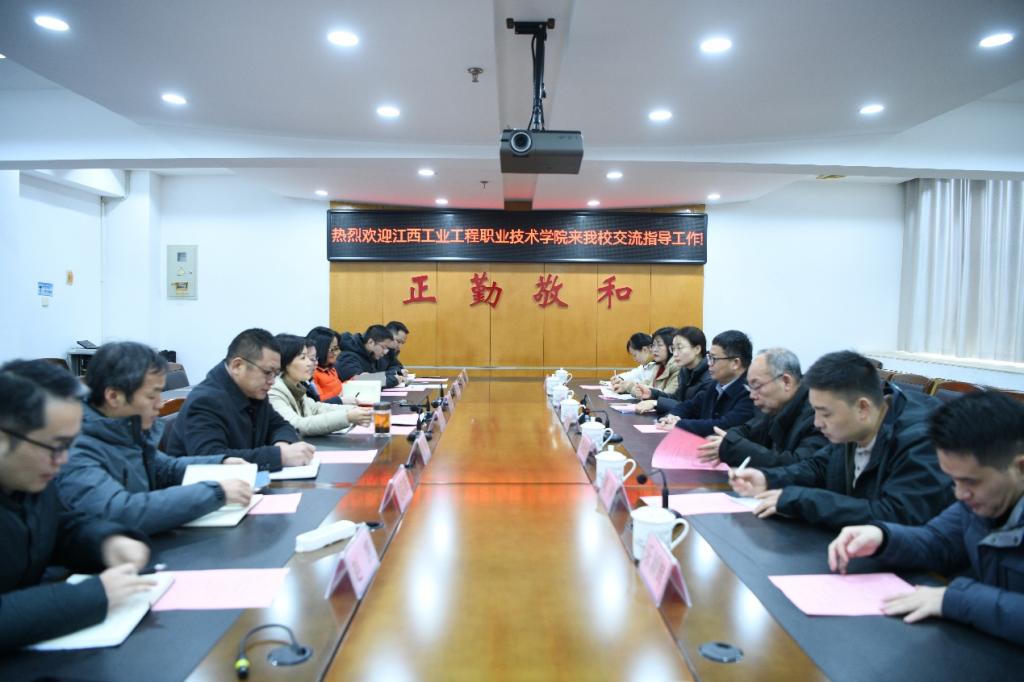 1月25日,江西工业工程职业技术学院党委书记罗亨江一行7人来beat365考察交流。校党委副书记、校长彭慧热情接待了罗亨江一行。党委委员、副校长邱家明,党委委员刘锋,相关二级学院和职能部门负责同志参加座谈。