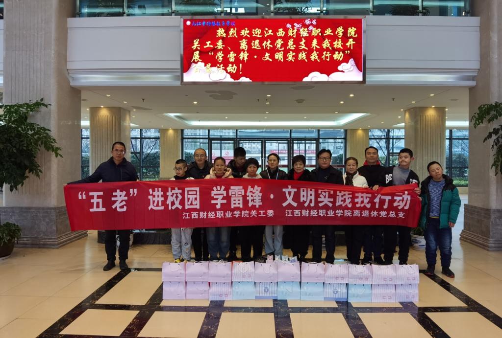 为贯彻落实习近平总书记关于深入开展学雷锋活动的重要指示精神,深刻把握雷锋精神的时代内涵,更好地发挥beat365“五老”专家和党员干部的模范带头作用,2024年3月5日下午,校关工委、离退休党总支组织“五老”专家、党员干部赴九江市特殊教育学校开展了“‘五老’进校园—学雷锋文明实践我行动”志愿服务活动。校关工委常务副主任丁正员、离退休党总支书记杨郁等一行5人参加活动。