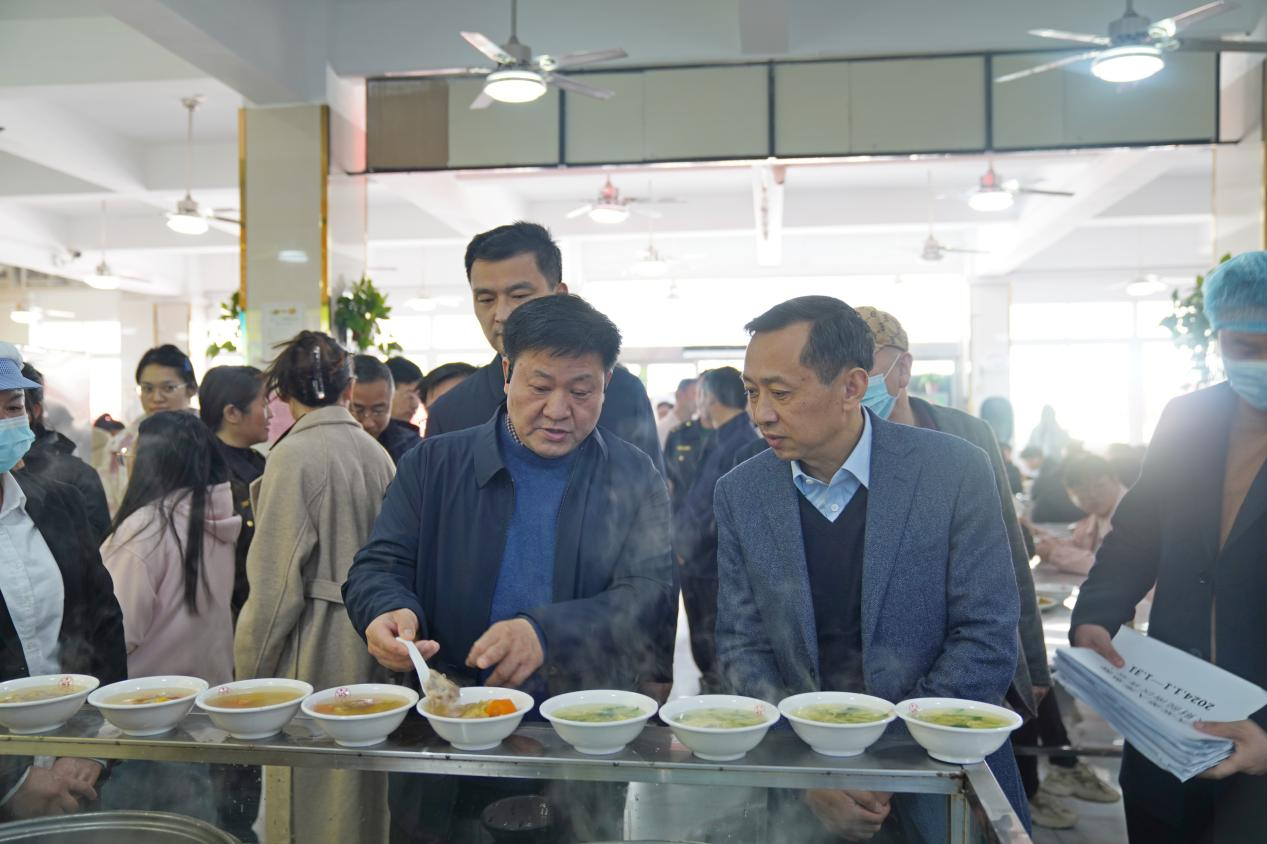 孙金淼一行来到浔阳校区南区食堂,实地考察了卫生环境、食品加工、餐饮用具消毒设施等情况,听取了有关负责人对学校食品安全工作的汇报,并查阅了食品入库单据等相关记录。