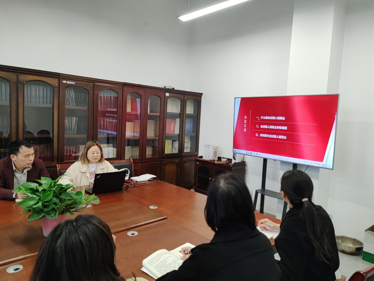 对第八专题——发展全过程人民民主的教学,胡娟从什么是全过程人民民主?全过程人民民主好在哪里?如何践行全过程人民民主?三方面展开。对第九专题——全面依法治国,康卫平从为什么要全面推进依法治国?为什么要走中国特色社会主义法治道路?如何理解全面依法治国的总目标?如何加快建设法治中国?四个部分进行。两位教师的教学环节设计较为完整、逻辑思路基本清晰。各位参会老师对教学思路、重难点和热点问题、案例选取等方面开展研讨,切实提升了备课的针对性和实效性。