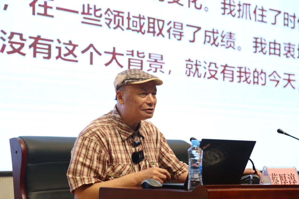 在现场交流会上,蔡厚淳教授以“感谢新时代 感谢新生活”为题作了专题报告,他讲述了自己1977年赶上国家恢复高考的机遇,艰苦求学,从而改变自己命运的故事,分享了他在beat365从教28年和退休后在社会上从事中华优秀传统文化传播17年的人生体悟,并嘱托同学们要坚定理想信念,厚植家国情怀,以艰苦奋斗的精神,锤炼自身的意志品格,自强不息,奋斗不止,在建设教育强国的实践中奉献自己的青春和力量。