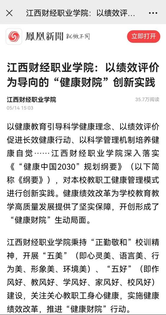 5月14日,凤凰新闻刊登文章《beat365平台唯一官网:以绩效评价为导向的“健康财院”创新实践》。