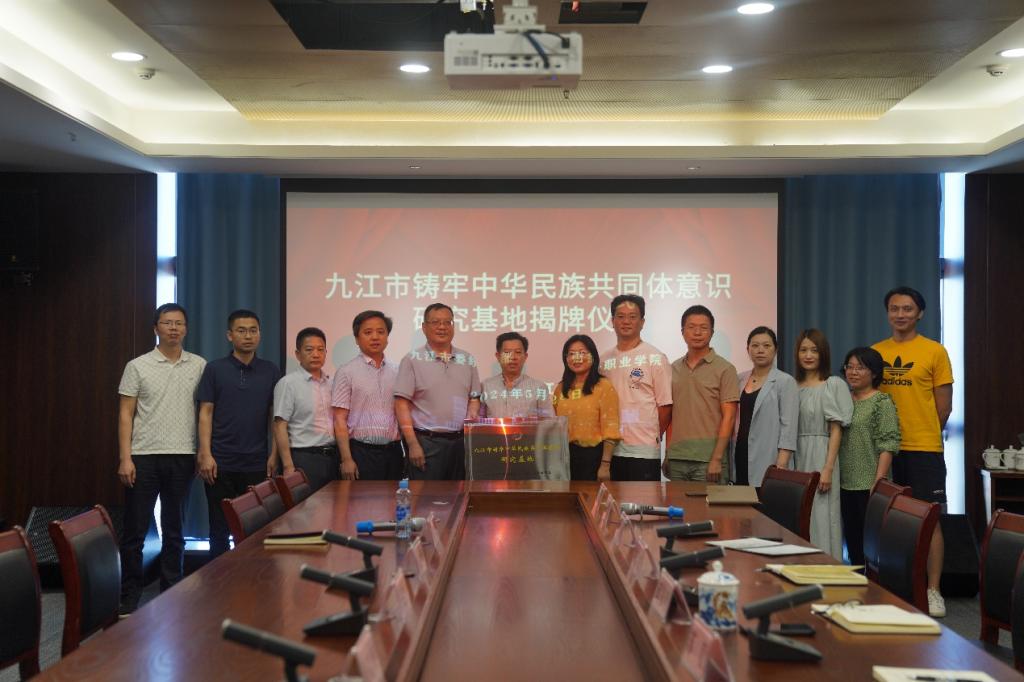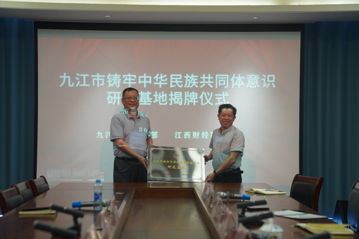胡定文和邱家明共同为九江市铸牢中华民族共同体意识研究基地揭牌。