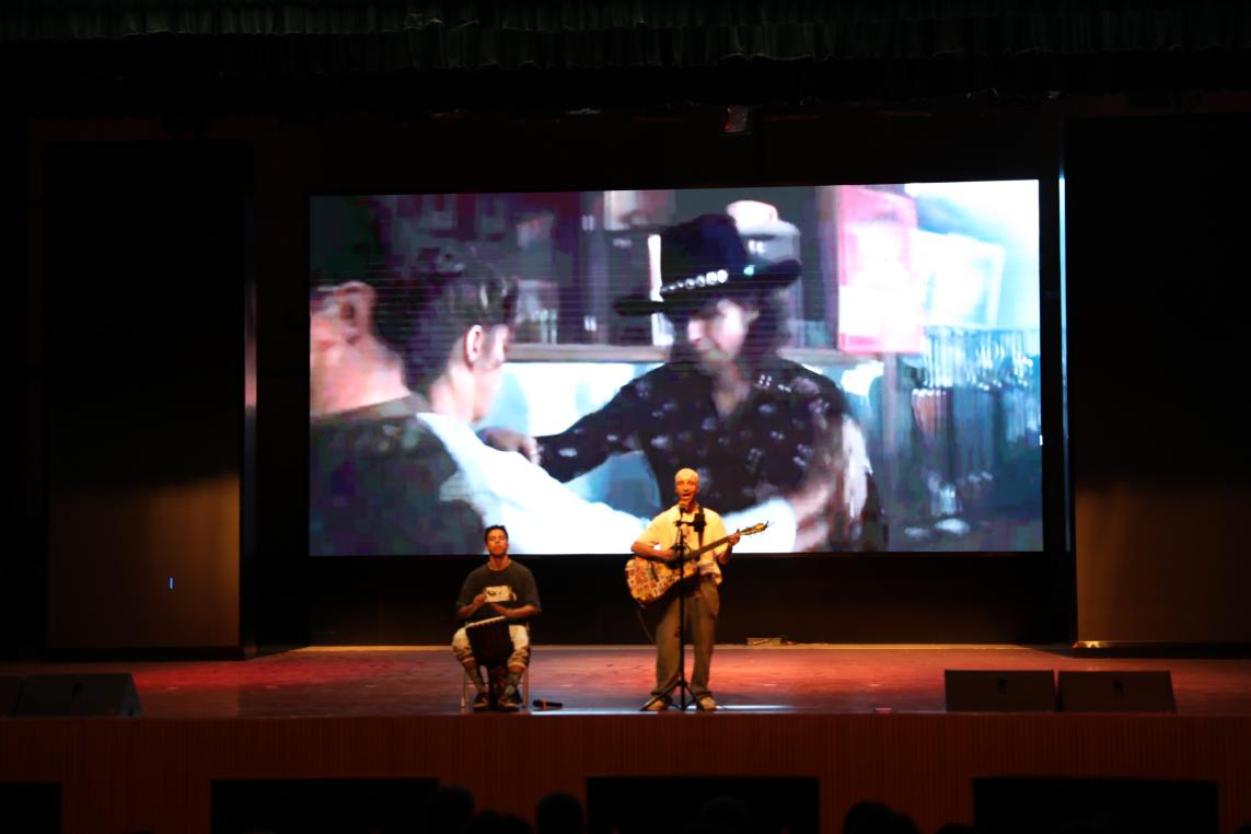 决赛现场,参赛选手纷纷展现语言魅力,他们或激昂高亢,或深情款款,用流利的英语朗诵着各自精心挑选的美文。有的选手演绎经典文学作品,有的诵读现代诗歌,他们的朗诵不仅语音标准、语调自然,还融入了丰富的情感和独特的个人风格,赢得了在场观众的阵阵掌声。评委们从语言能力、情绪感染力、舞台表现能力等三个方面进行了综合考评。经过激烈角逐,李伯乐,邓艾妍同学获得一等奖,艾思琪等5名同学获得二等奖,符皓等8名同学获得三等奖。比赛期间,来自ICE国际文化交流中心的2名摩洛哥留学生弹奏吉他和鼓、演唱经典歌曲Hotel California,为紧张而激烈的比赛增添了热闹的氛围。