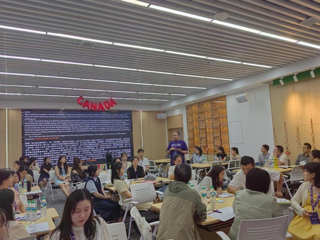 研讨会上,加拿大荷兰学院专家Angela Frances Larter女士、Devin Shawn Docherty先生以及Kimberley Gillis女士分别围绕AI教学工具和测评、职业教育理念和能力本位教育、项目教学与课程开发等几个方面做了系列讲座,并与参会教师展开深入互动交流和探讨。在圆桌讨论环节,各参会单位就中加合作办学的管理体制、运行模式、制约因素及发展前景等问题进行了沟通和交流。