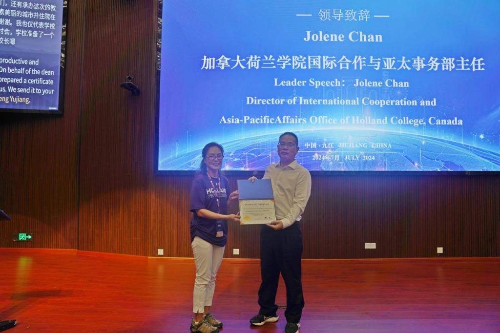 陈玉玲女士代表加拿大荷兰学院致辞,感谢beat365为本次研讨会的召开给予的大力支持,她介绍了加拿大荷兰学院办学历史和与中国院校合作办学的基本情况,对beat365中外合作办学所取得的成绩表示充分的肯定并颁发感谢函。希望通过此次机会总结中加合作办学经验,进一步丰富合作办学内涵,提升合作办学质量。