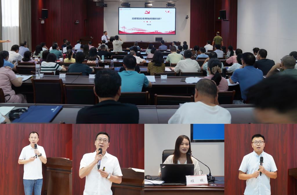 培训期间还举办了《师说讲堂》。学校马克思主义学院院长朱欣成、城乡建设学院副院长(主持工作)吕亨龙、基础教育学院党总支副书记沈克旻、数字经济学院实训教研室主任程曦、信息工程学院大数据技术专业负责人王奎分别作主题分享。
