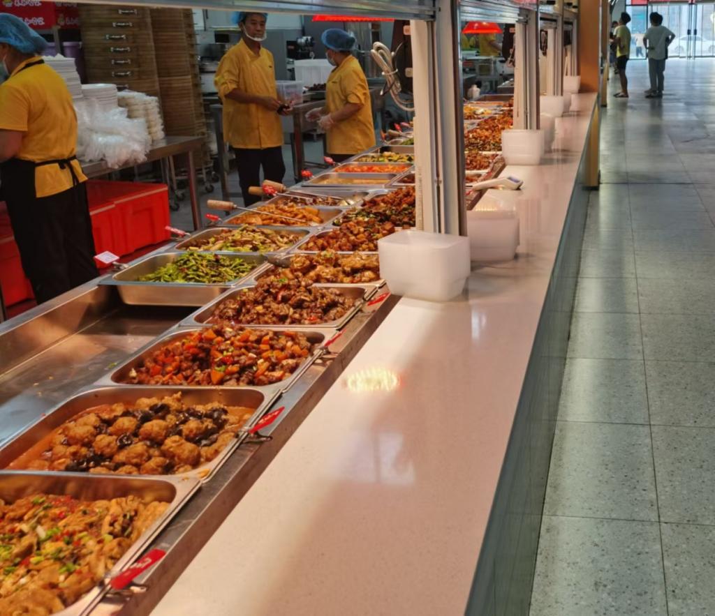 迎新期间,各食堂保证供餐充足并适当延长供餐时间,从饭菜口味、服务质量、食品卫生安全、就餐环境等多个方面做好各项准备,进一步丰富了菜品和主食花样,以满足来自不同地域的新生和家长的就餐口味,全方位保障新生及家长的就餐安全,提供优质的就餐体验;对迎新现场分区域设置流动卫生保洁组,增加保洁班次、加班加点随时进行迎新现场环境保洁,力争为新生呈现美丽、整洁的绿色校园;做好军训用品、生活用品发放工作,商业体供应充足生活用品,为新生提供所有来源正规、货真价实的商品。