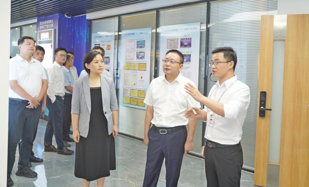 9月27日下午,九江市委副书记黄强在鄱阳湖生态科技城调研九江市数字经济产教联合体建设推进情况。校党委副书记、校长彭慧,市委副秘书长温景雄,校党委委员刘锋,市教育局副局长曹利平,市发改委副主任胡小驰,市工信局副局长周立峰,市人社局四级调研员王细赞,科技城管委会四级调研员、财政金融部部长姚书华以及九江数字经济研究院、江西骏学数字科技有限公司、江西鲲鹏信息产业有限公司、江西忽米智能科技有限公司负责人等陪同调研。