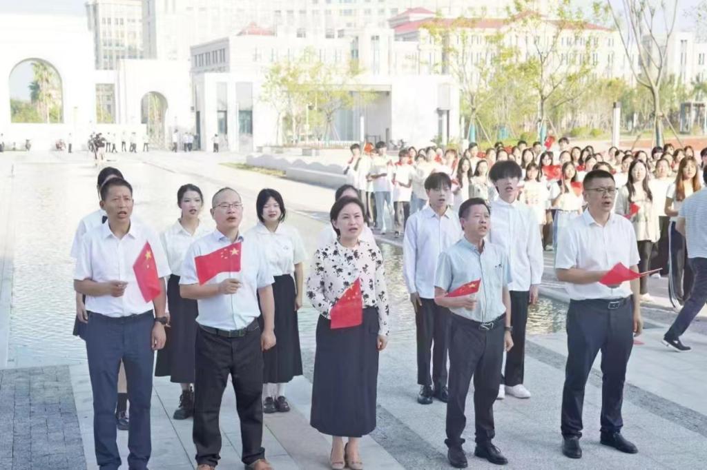 最后,全场师生挥舞着手中的小国旗,齐声高唱《歌唱祖国》,共同祝愿伟大的祖国繁荣昌盛。