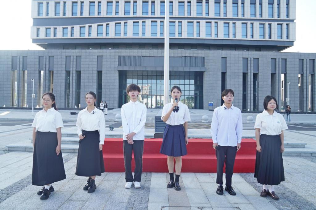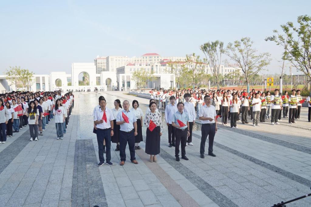 为庆祝中华人民共和国成立75周年,beat365于9月30日在八里湖校区举行了“向国旗敬礼——青春致敬祖国”国庆升旗仪式。校党委副书记、校长彭慧和在家校领导与学生干部代表、学生社团代表、数字经济学院部分新生共300余人参加了升旗仪式。