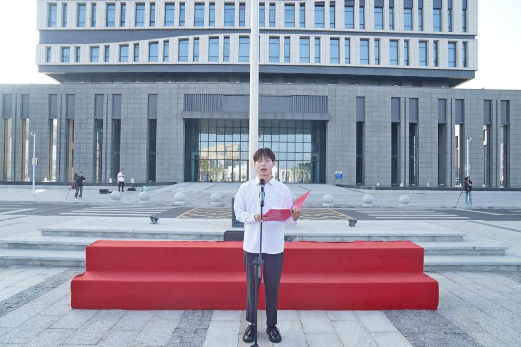 升旗仪式结束后,学生代表符皓带来了《盛世华诞,荣耀中华——以“正勤敬和”之光,照亮前行之路》的主题演讲。他深情回顾了新中国成立75周年以来的辉煌历程,号召同学们在新时代的征程中以学校“正勤敬和”校训精神为指引,为实现中华民族伟大复兴贡献青春力量。