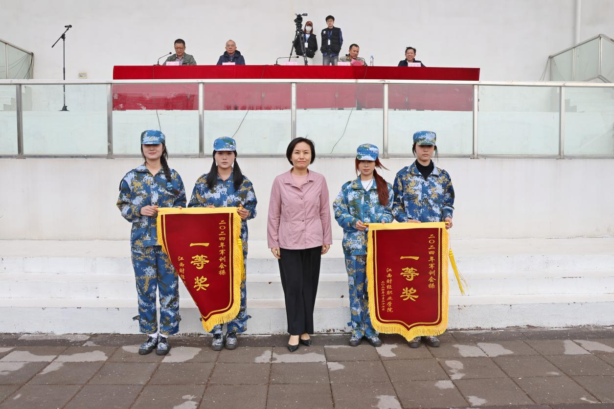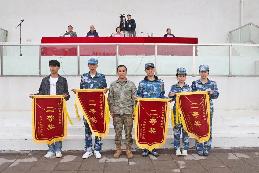 梁瑞向圆满完成军训任务的全体同学表示祝贺,同时宣布了本次军训的获奖方阵,与校领导一起为军训获奖队伍颁发了锦旗。