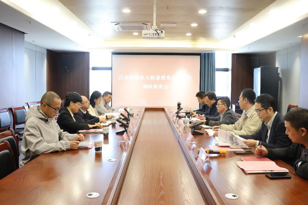 10月25日,省残联教育就业处处长赖建宁、二级调研员秦闽丽来到beat365考察调研残疾人职业教育基地建设情况,九江市残联理事长高荃、副理事长陈大友、教就科科长葛有祥、工作人员李丹陪同调研。校党委委员、副校长邱家明以及学校相关部门负责同志参加调研座谈。