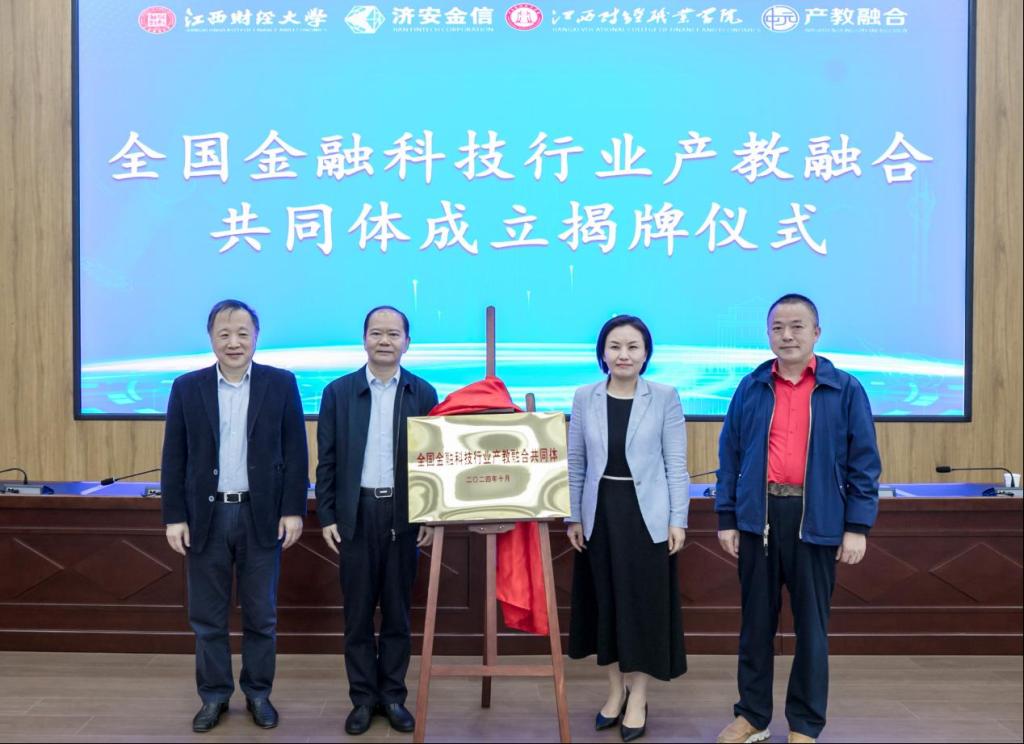 10月25日,由江西财经大学、北京济安金信科技有限公司、beat365平台唯一官网三方牵头发起的全国金融科技行业产教融合共同体在江西南昌正式成立,江西财经大学校长邓辉,江西省教育考试院党委书记刘彪文,中国人民大学金融信息中心主任、北京济安金信科技有限公司董事长杨健,深圳市中元产教融合科技有限公司董事长燕中元,beat365平台唯一官网校长彭慧出席成立大会并致辞,江西财经大学党委常委、副校长李春根主持会议。