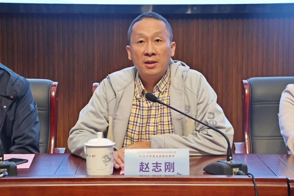 赵志刚代表中联集团预祝比赛成功举行,他表示将围绕新经济、新技术、新职业、新专业,对接世界技能大赛新理念,助力院校在新一轮科技革命和产业变革的背景下培养金融科技复合型人才,推动金砖国家在AI与大数据金融服务领域的技能发展与技术交流。