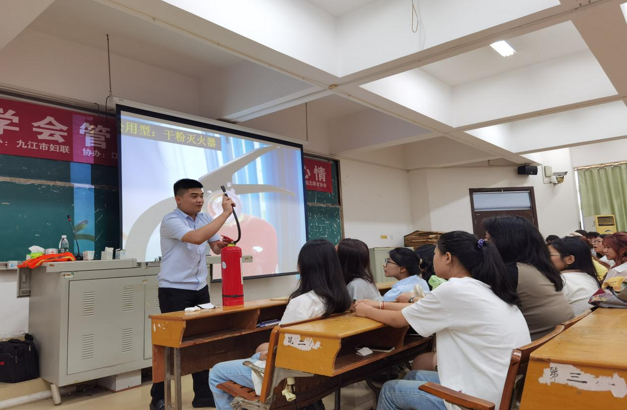 在消防安全知识讲座上,消防安全宣传员针对高校发生的火灾事故进行分析,并详细讲解了学校常见火灾类隐患,从火灾易发情况、防火基本知识、灭火器的具体使用方法、扑救初期火灾及自救互救逃生方法等方面进行了全方位的消防安全知识普及,并现场演示了灭火器的使用。消防讲座内容专业丰富、生动形象,列举的火灾案例极具警示教育效果。