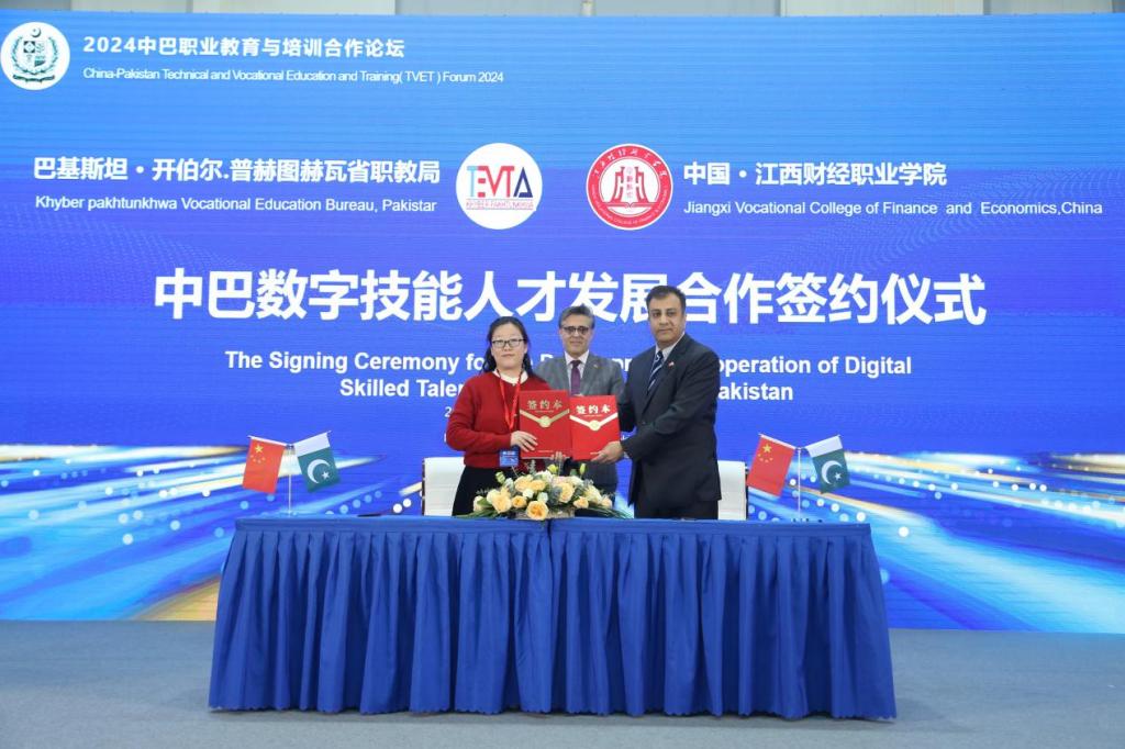 论坛上,beat365和开伯尔-普赫图赫瓦省政府技术教育与职业培训局签署项目合作协议,双方将聚焦金融服务与管理、金融科技应用、会计科技、数字营销以及信息技术等专业领域,共建数字技术产业学院,打造网络教学空间,共同建设数字化教学资源,分期开展数字化技能培训与测试、人员交流与互访、学历教育认证等合作。