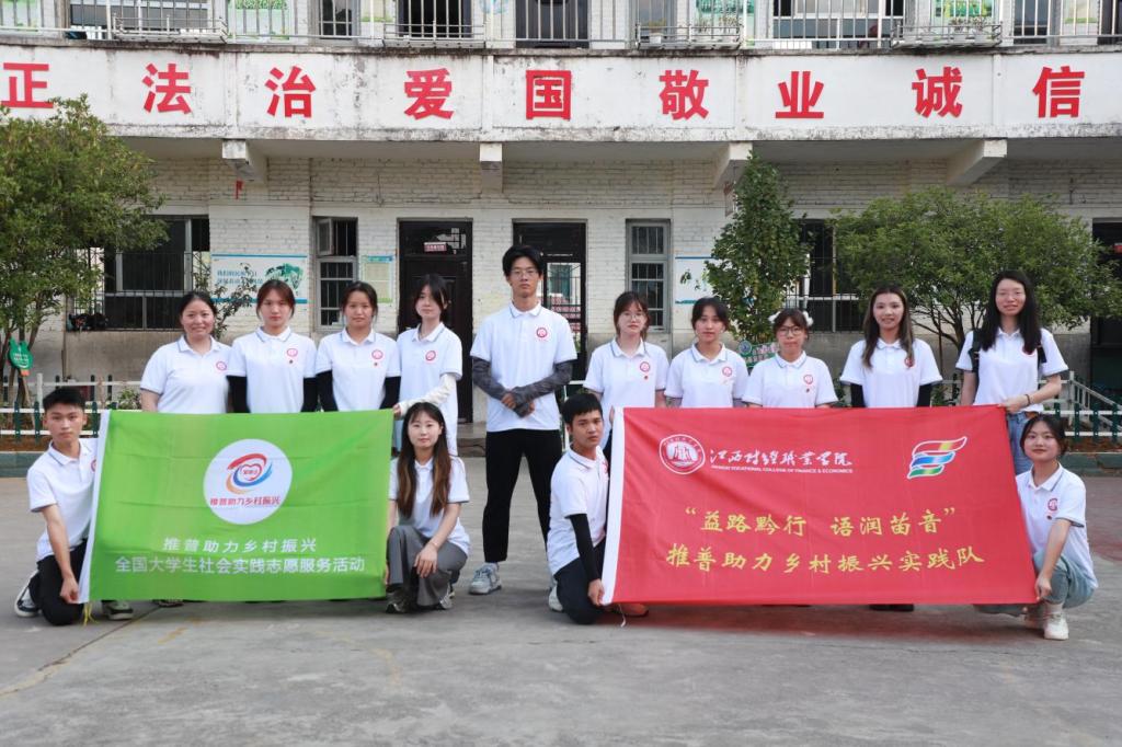 “益路黔行,语润苗音”推普实践队的14名师生于2024年7月10日至19日奔赴贵州省凯里市舟溪镇开展“推普助力乡村振兴”社会实践活动。实践队通过运用在线课堂、智能语音助手等数字化工具,广泛推广国家智慧教育读书平台等在线学习资源;结合当地“旅游+”的发展理念,开设短视频拍摄、剪辑技巧以及抖音平台运营等实用课程,为乡村振兴注入了新活力;依托江西丰富的红色教育资源,精心组织了一系列以“典耀中华”为主题的普通话宣讲和朗诵活动,促进了语言文化与乡村、民族特色的深度融合。