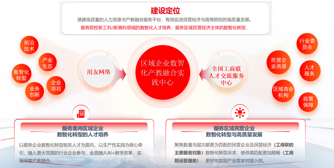 共同体立项多个产学研合作项目,围绕“智能会计师”人才需求,以“企业数智化协同创新中心”为连接,以“用友BIP数智化工程师产业学院”为载体,以“未来会计实践中心”为抓手,以“双师发展中心”为支撑,打造智能会计现场工程师学院;联合成员单位共建数智商业综合实践中心,支持学科专业集群建设,培养具备行业特色的创新型复合人才;与全国工商联人才交流服务中心共建区域企业数智化产教融合实践中心,聚力打造集人才培养、科学研究、技术创新、企业服务、学生创业等功能于一体的服务区域民营企业高质量发展的示范性人才培养高地。