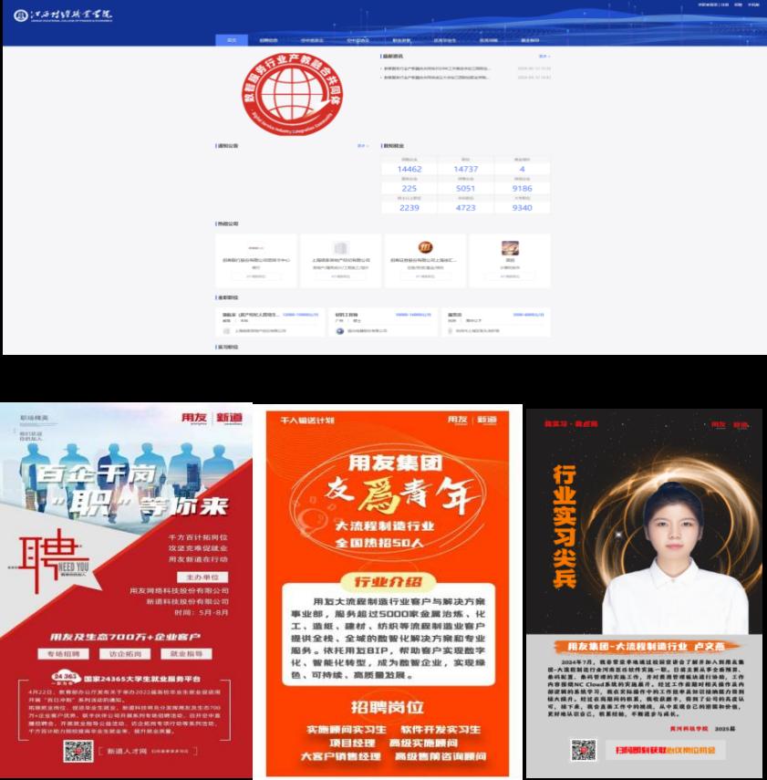 通过搭建新道人才网和江西财经人才网,共同体实现了企业与院校的精准对接,每季度吸引超25家企业在平台发布招聘信息。同时,启动用友南昌产业园工程,推出“千人输送计划”和“我实习·我点亮”系列活动,促进了数智人才的常态化、平台化、规模化输送。