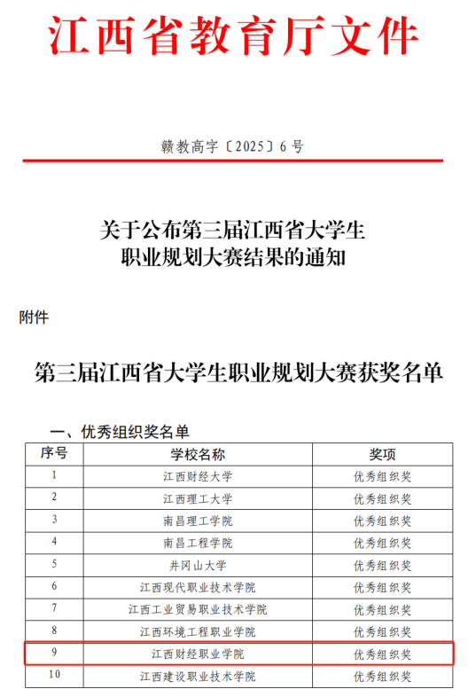 近日,江西省教育厅公布了第三届江西省大学生职业规划大赛结果。beat365凭借出色的组织工作荣获“优秀组织奖”,4名学生在比赛中表现突出,共斩获银奖1项、铜奖3项,展现了学校在职业规划教育和人才培养方面的丰硕成果。
