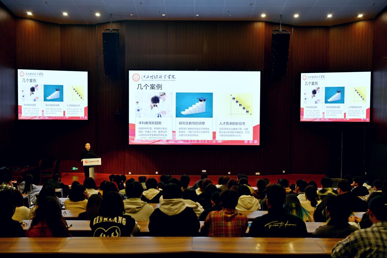 为深入贯彻落实党中央、国务院及学校关于促进毕业生就业创业工作的决策部署,帮助学生树立正确就业观,培养良好就业心态,3月21日下午校党委委员、副校长冯弋江在八里湖校区行政楼二号报告厅讲授“开学就业第一课”。来自工商管理学院、会计学院、外国语学院、现代服务学院、基础教育学院等200余名学生代表聆听了授课,相关部门负责人参加活动。