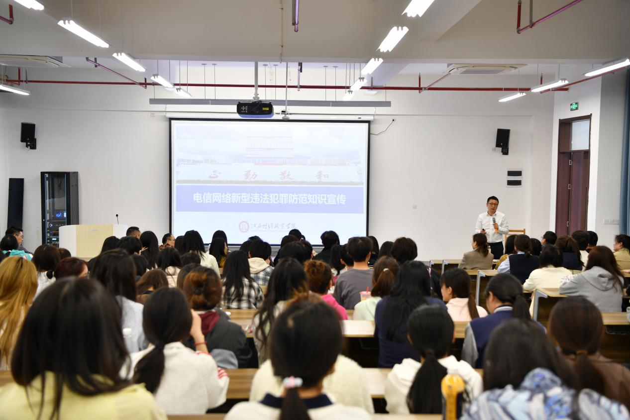 3月25日下午,校党委委员刘锋在洙泗学馆117教室为财税金融学院师生作题为《电信网络新型违法犯罪防范知识宣传》的专题讲座。讲座以“不参与、不相信、不理睬、不汇款”为核心,结合真实案例,深入剖析电信诈骗的常见手段及防范措施,旨在提升师生反诈意识,筑牢校园安全防线。
