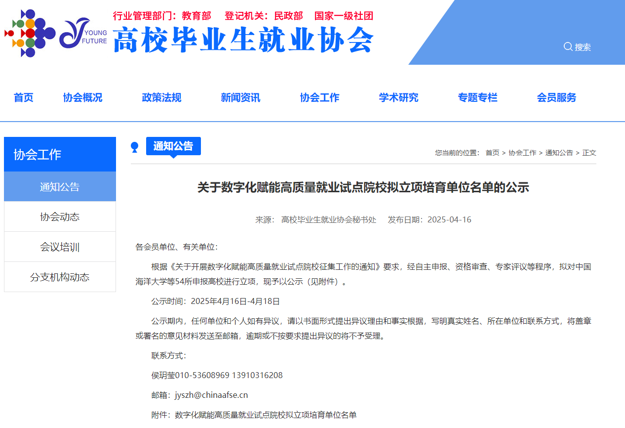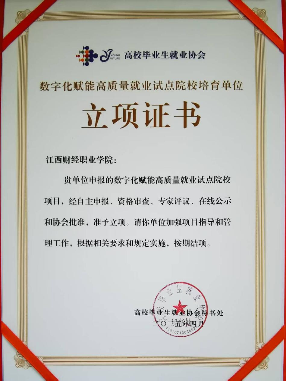 近日,高校毕业生就业协会公布“数字化赋能高质量就业试点院校培育单位”名单,经自主申报、资格审查、专家评议等程序,beat365成功入选,成为江西省获此立项的两所高校之一。