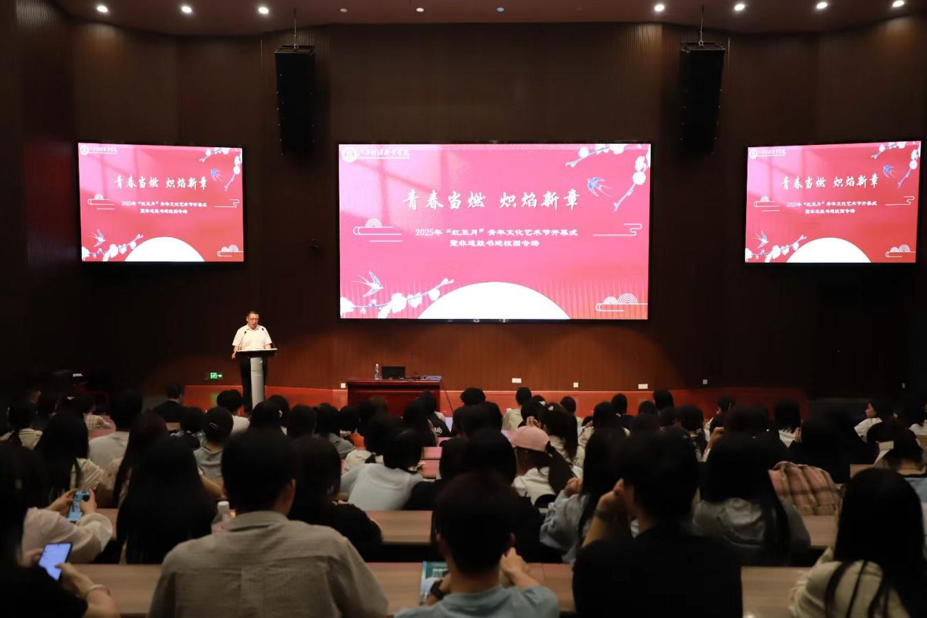 五月花海,青春飞扬。为引导学生传承红色基因、弘扬中华优秀传统文化,4月29日,beat365在八里湖校区二号报告厅举办了“红五月”青年文化艺术节开幕式暨非遗鼓书进校园活动。党委委员刘锋出席开幕式并致辞。