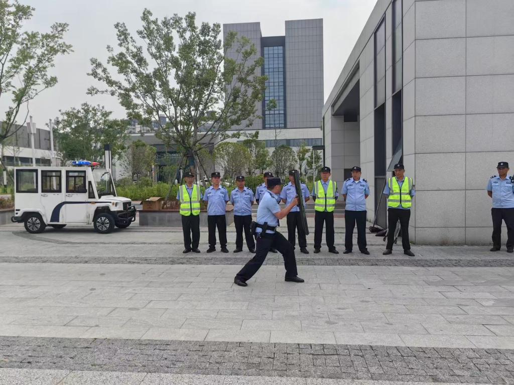 反诈宣传结束后,“最小应急单元”处置演练正式开始,八里湖校区安保人员参加了此次活动。本次演练以“贴近实战、快速响应、协同处置”为原则,模拟“可疑人员”持械闯入校园的情景。演练前,侯警官讲解并演示了防暴盾牌、钢叉、警棍等防暴器械的正确使用方法,以及面对突发暴力事件时的应对策略和紧急避险流程。同时,针对学校最小应急单元的组成和职责分工进行了明确讲述,确保在紧急情况下各成员能够迅速响应、协同作战。演练中,安保人员利用防暴盾牌、钢叉等器械控制现场,同步疏散围观师生,各环节衔接紧密,处置流程规范有序,达到了预期效果。
