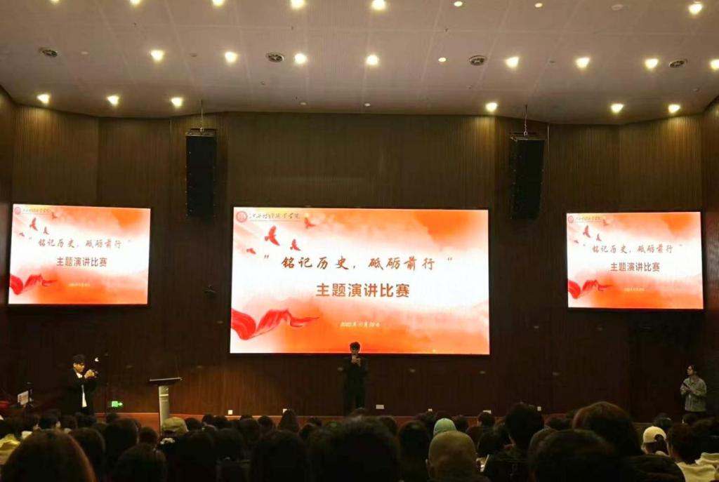 为学习贯彻习近平总书记在纪念中国人民抗日战争暨世界反法西斯战争胜利80周年大会上发表的重要讲话精神,校团委于10月22日在八里湖校区行政楼二号报告厅举办了“铭记历史,砥砺前行”主题演讲比赛。经过二级学院初赛选拔,共有24支队伍脱颖而出,晋级决赛。