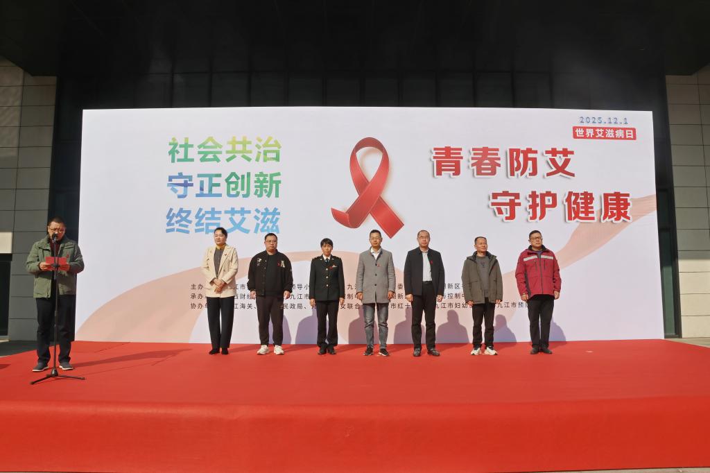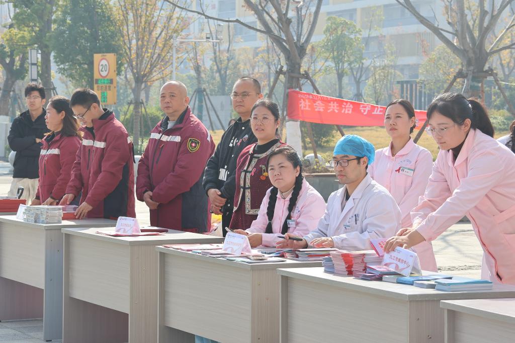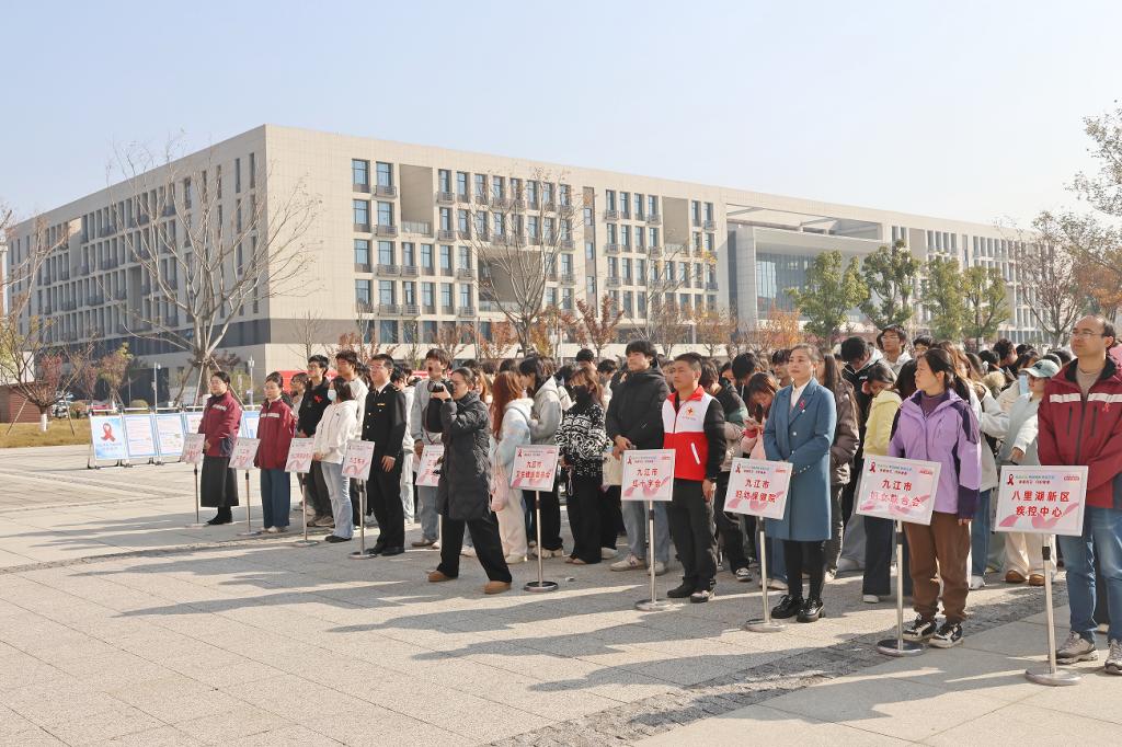 12月1日上午,beat365和九江市疾病防治工作领导小组办公室、九江市卫生健康委员会、八里湖新区社会发展局共同举办的第38个“世界艾滋病日”宣传活动启动仪式在八里湖校区自强广场顺利举行。本次活动以“社会共治,守正创新,终结艾滋”为主题,旨在进一步提升师生防艾意识,营造共同参与防治的良好氛围。