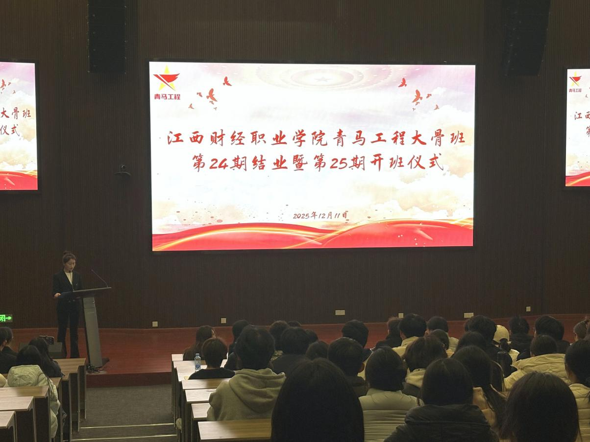 仪式在雄壮激昂的国歌声中拉开帷幕。与会师生共同观看了第二十四期“青马工程”培训班视频剪影。镜头中,理论学习的专注身影、实践调研的坚实足迹、红色教育的深刻感悟,全方位展现了上一期学员在思想淬炼、能力提升中的成长与蜕变,引发全场阵阵共鸣。