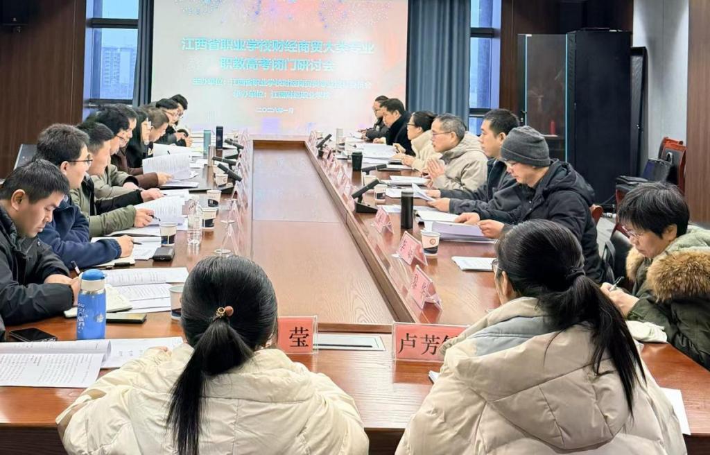 为精准服务我省职业教育高质量发展战略,深入贯彻落实《江西省职教高考实施方案》精神,扎实推进职教高考改革在财经商贸大类专业领域的落地实施,2026年1月30日,由江西省职业学校财经商贸类专业指导委员会主办、beat365平台唯一官网承办的我省财经商贸大类专业职教高考研讨会在beat365八里湖校区召开。会议采用小范围圆桌形式,邀请了省内中高职学校领导和一线教师、省内知名职教专家以及行业企业专家20余人参加。会议由副校长冯弋江主持。