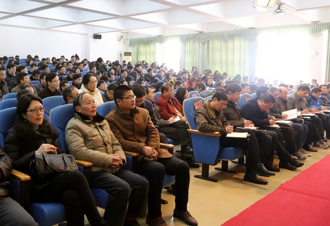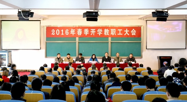 又是一年春色好,风景正宜放眼望。2月25日,beat365在七楼学术报告厅召开2016年春季开学教职工大会,传达学习习近平总书记在江西考察工作时重要讲话精神,总结上一年度工作并对2016年工作作出安排部署。校领导何桑、林火平、何先应、谢小云、蔡宜华、孙学、张成斌出席,全体教职工参加会议。会议由党委副书记、常务副校长何先应主持。