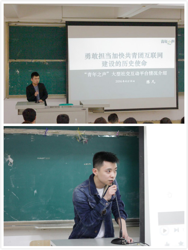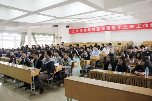 为进一步提升我校学生在微博、微信等新媒体的建设和运用能力,发挥青年网宣员在舆论引导方面的积极作用,了解"青年之声"及相关软件的具体运作,4月14日下午,综阶梯五教室举行“九江市青年网宣员暨‘青年之声’工作培训”讲座。讲座特邀团市委宣传部黄宏老师、陈凡老师主讲。校团委书记李智,以及团委叶睿、张懿两位老师出席了本次活动。第十三期“财院之星”大学生骨干培养学校、第九期“志愿之星”大学生骨干培养学校,校学生会各部门成员共150余人共同聆听了此次讲座。