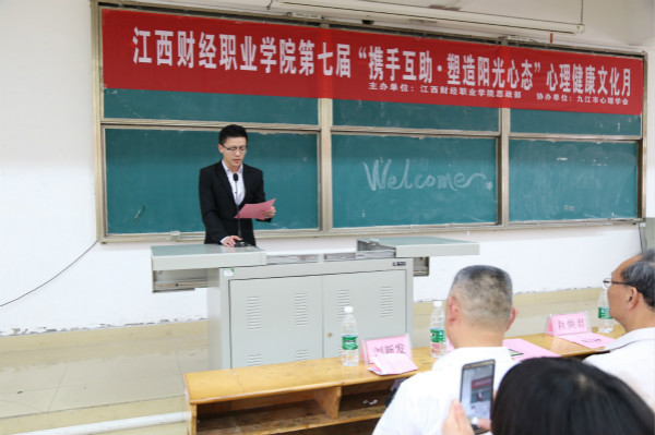 九江市心理学会副会长兼秘书长刘新发同志在开幕式上作了热情洋溢的讲话。首先,他以饱满的热情祝同学们“五四”青年节快乐;接着,他对本次活动的多样性、实用性、教育性给予了高度评价,对广大同学积极投身活动努力塑造阳光心态寄予了殷殷期望;最后,他预祝本届心理健康文化月活动取得圆满成功!
