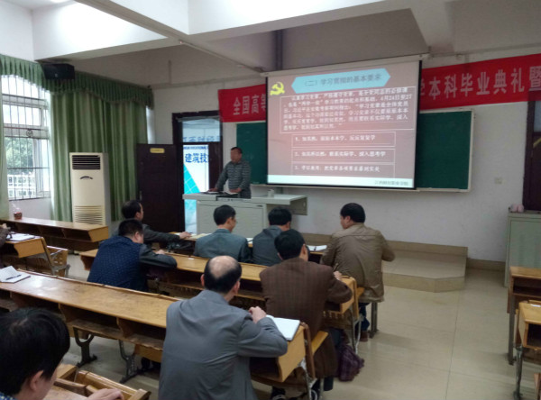 为进一步提高党员理论水平,加强党员党性修养,落实“三会一课”制度,切实开展好“两学一做”学习教育,2016年5月9日,机关党总支图保支部和后勤支部全体党员在综合楼阶梯教室(一)开展党课教育活动,图保支部支委、合作发展处处长周执平同志作《学习党章,努力加强党性修养》的专题讲座。
