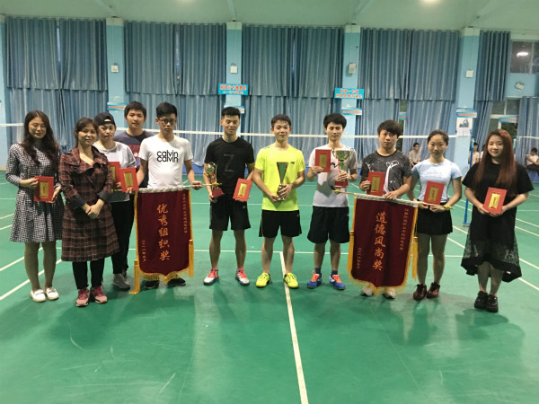 本次比赛包含了男单、女单、男双、女双和混双,每局21分,采用五局三胜制。经过精彩的角逐,经济贸易学院、本科部和会计第一学院的三支队伍脱颖而出,分别夺得冠军、亚军和季军。会计第二学院和信息工程学院分别荣获道德风尚奖和优秀组织奖。本科部的鲍全斌同学、经济贸易学院的聂彤昕同学、会计第一学院的姜瑞华同学、会计第二学院的郑璐佳同学、信息工程学院的邓豪同学、工商管理学院的何玲茹同学、财税金融学院的陈文霞同学和外国语学院的马新雪同学获得优秀运动员称号。比赛结束后,基础部郭红主任为获奖团队和优秀运动员颁奖并合影留念。