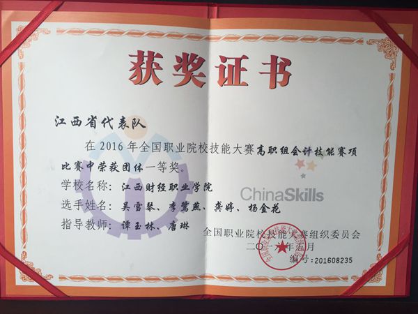 2016年6月4日,全国职业院校技能大赛高职会计技能赛项在山西省财政税务专科学校举行。beat365学子代表江西省参赛,再次荣获一等奖。