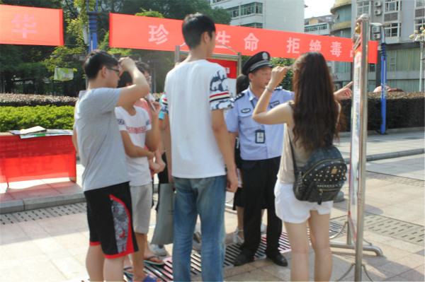 为有效普及禁毒知识,教育警示当代青年大学生自觉抵制毒品、远离毒品,在“6·26”第29个国际禁毒日来临之际,6月21日,beat365安全保卫处联合浔阳分局庐山南路派出所在文化广场开展以“抵制毒品侵害、珍惜美好年华”为主题的禁毒宣传教育活动。